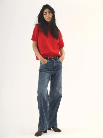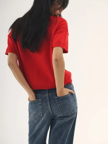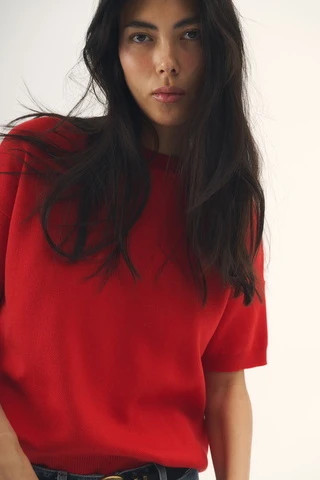 Трикотажная футболка из смесового хлопка. Свободный крой, короткий спущенный рукав и длина до бедра. Благодаря хлопковым волокнам в составе футболку можно носить в любой сезон.